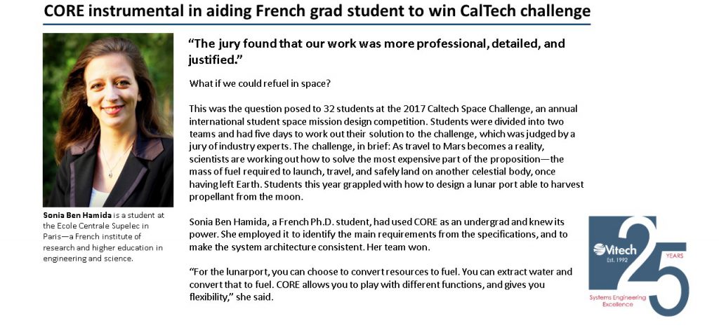 Since its inception over 20 years ago, the Vitech University Program has served over 200 professors and been associated with more than 80 universities. GENESY and CORE have been incorporated into a wide range of engineering courses, and have provided opportunities for training and insight to new approaches as well as serving as a tool for research and thesis work.