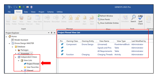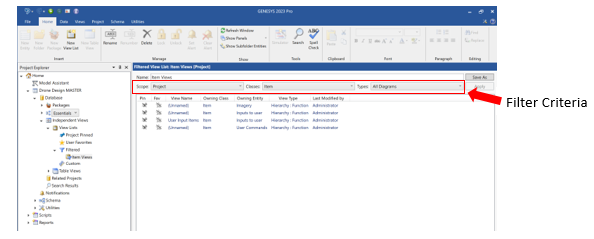 GENESYS 2023 introduces both Table Views and View Lists to improve usability and navigation of the model. Unlike the standard GENESYS views which are entity centric, table views and view lists are not owned by entities and therefore need a home in the GENESYS Project Explorer. In GENESYS 2023, a new container has been added to store, organize, and manage these views. Search capabilities have been updated to include views in the Independent Views container in the search results.