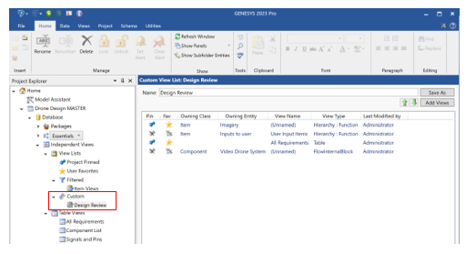 One of the key strengths of GENESYS and a significant differentiator from other MBSE tools on the market is that GENESYS autogenerates diagrams, or views, from the data captured in the model. Due to this design, GENESYS ensures consistency across all diagrams and layers of your architecture. GENESYS can also save multiple views of the same diagram, reflecting differences needed to better communicate diagrammatic aspects or content in a tailored way for the target audience. To better organize the multitude of views that exist in a GENESYS model, GENESYS 2023 includes several new features.