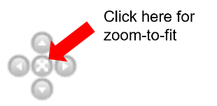 GENESYS 2023 includes a shortcut when viewing a diagram that both centers and scales the active diagram to fit in the current diagram window. This command can be executed using a single-click in the middle of the Navigation Tool, shown below: